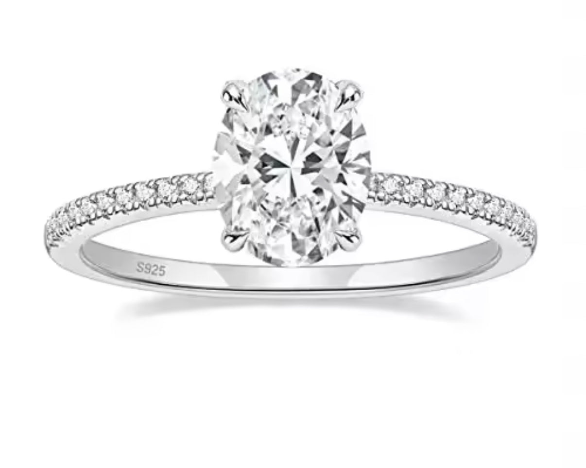 ✔ Setting: Encrusted band half way around each side of 3ct. Moissanite