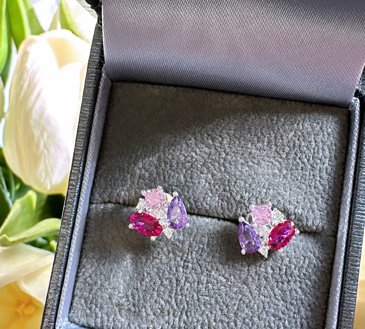 Sterling Silver Rose Gold Plated Heart Stud Earrings