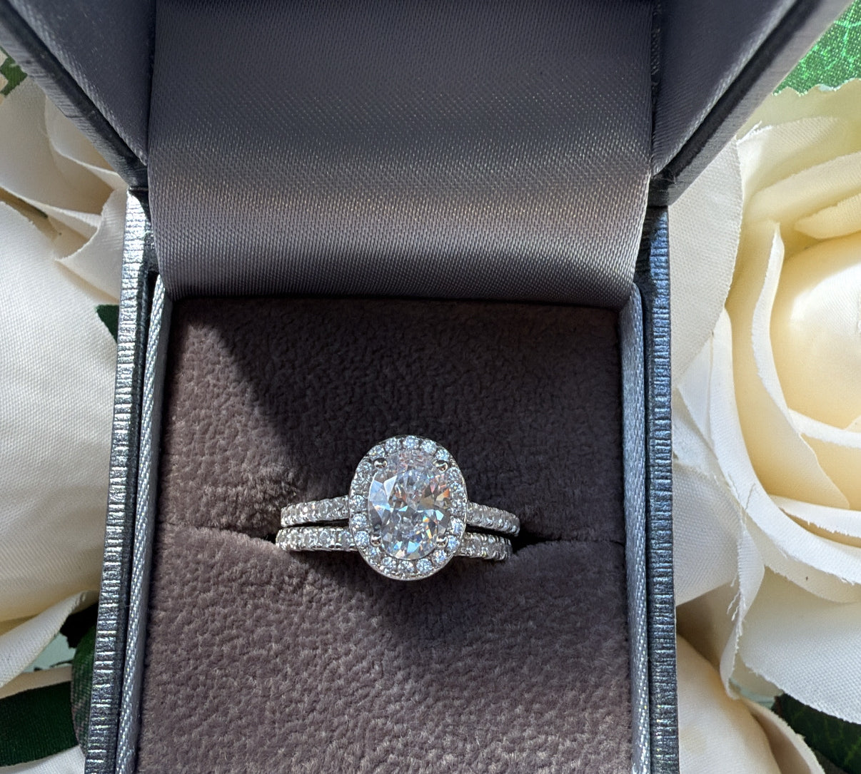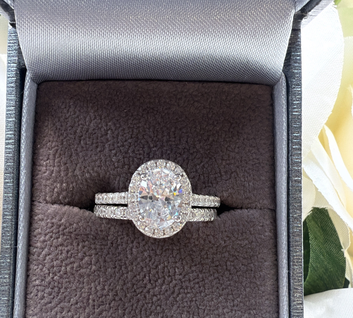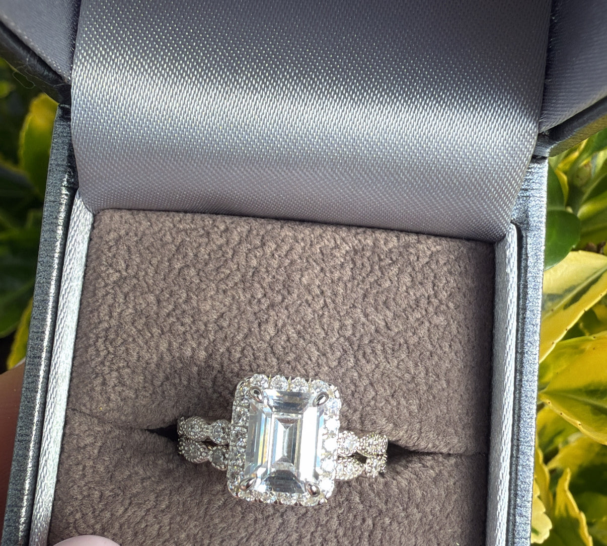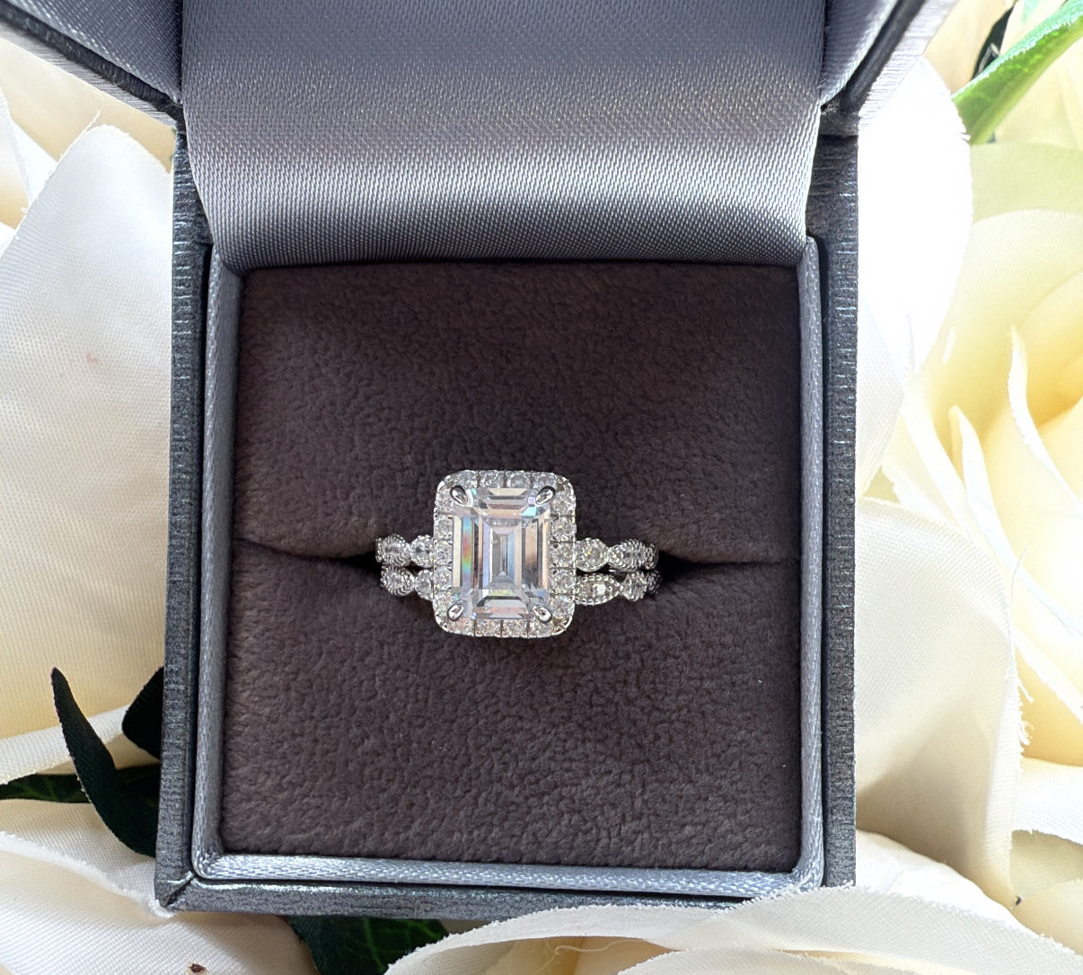 The Vienna Set – Emerald-Cut Halo Ring Duo Sterling Silver