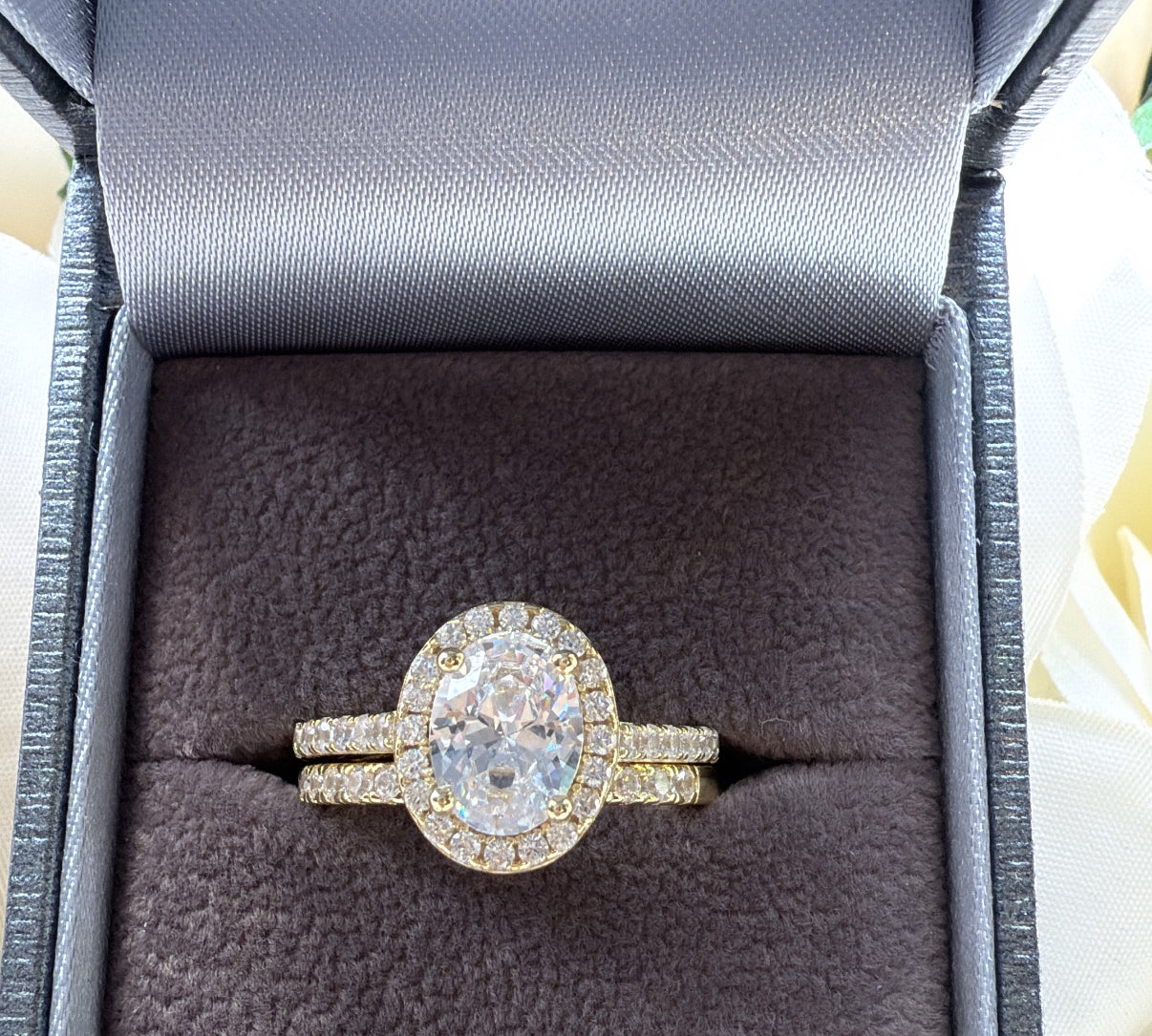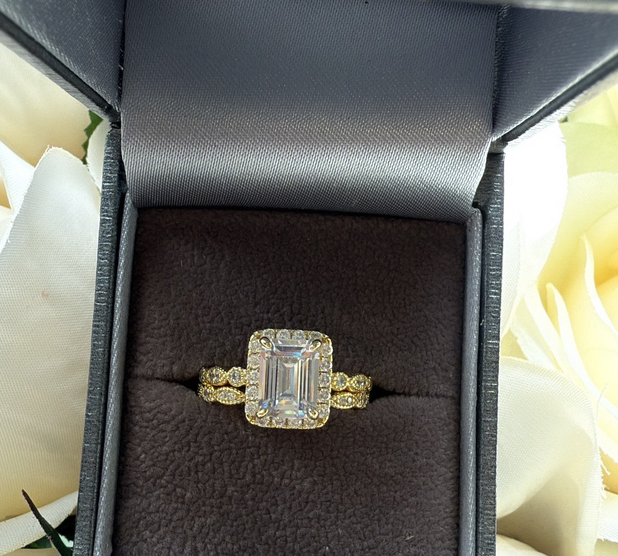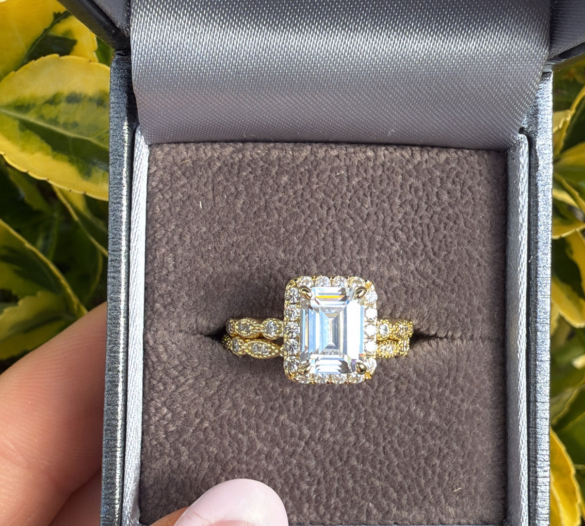 The Vienna Set – Emerald-Cut Halo Ring Duo Sterling Silver Gold Plated