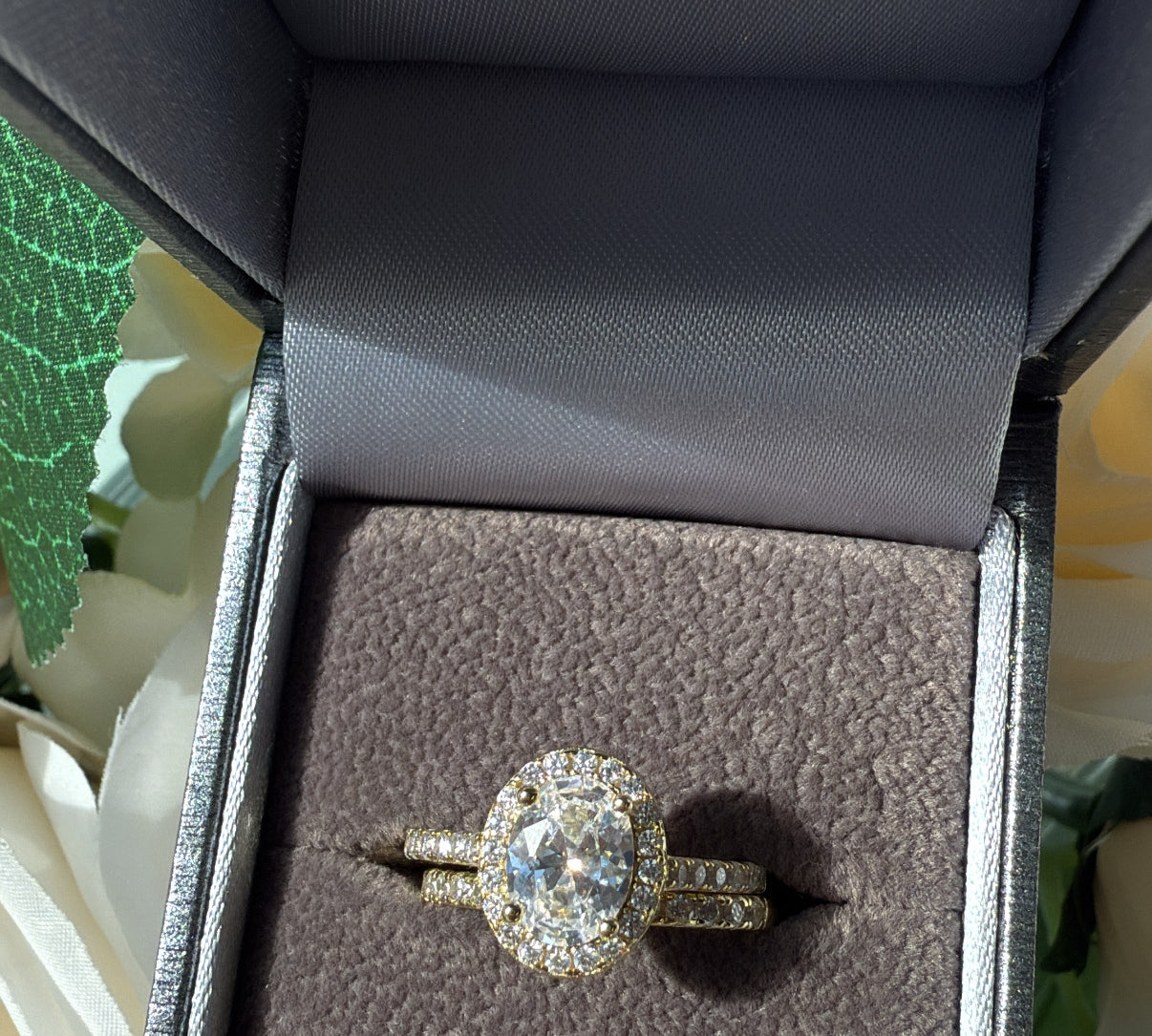 Sterling Silver Halo with Encrusted Band and Hidden Halo Ring- Gold