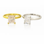 Elevate your jewelry collection with this breathtaking 2-carat moissanite solitaire ring. Featuring a striking radiant-cut moissanite, this design captures the perfect balance between modern lines and timeless brilliance. Set in your choice of lustrous yellow gold or cool sterling silver, this piece offers a versatile elegance that complements any style.