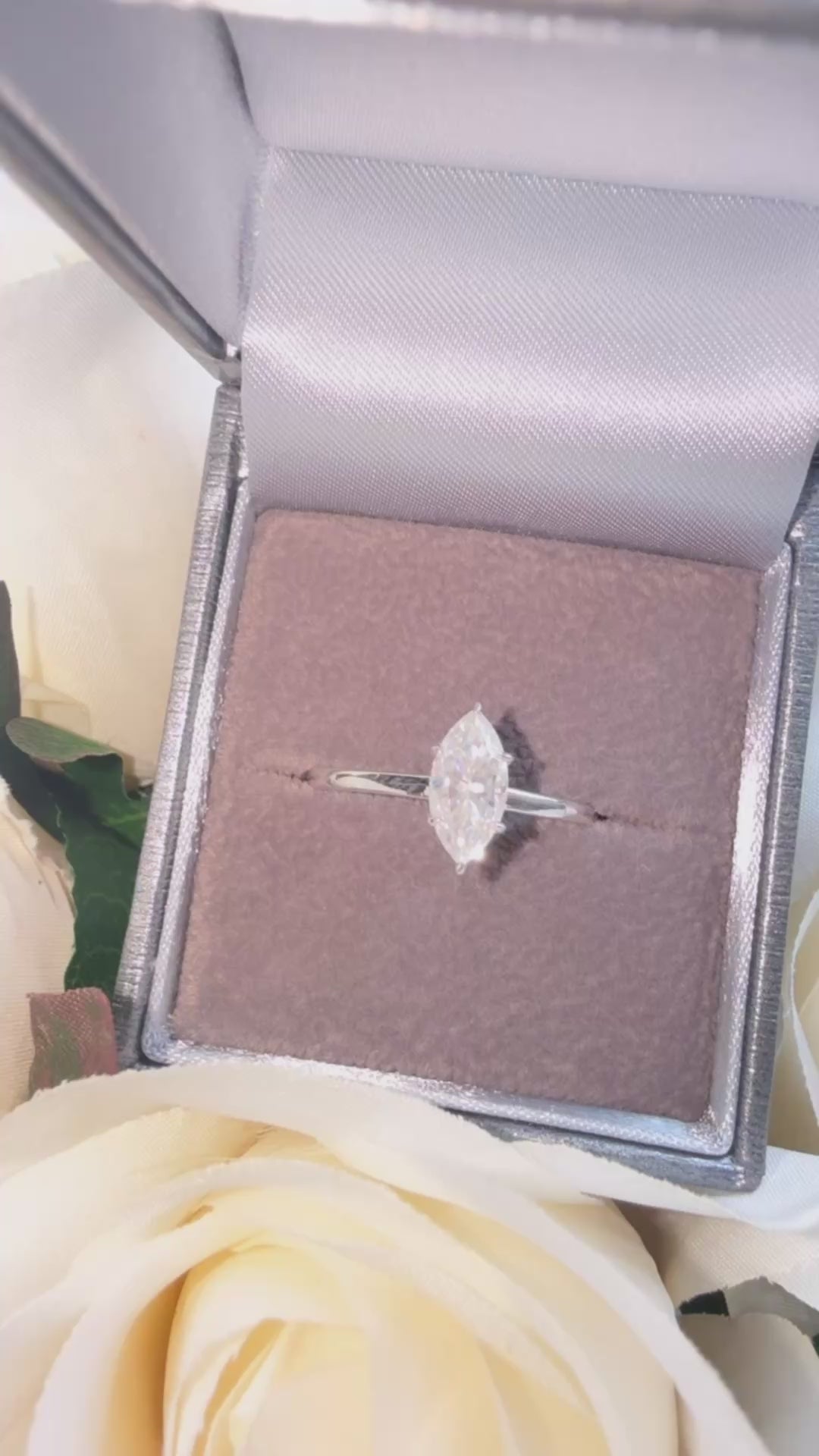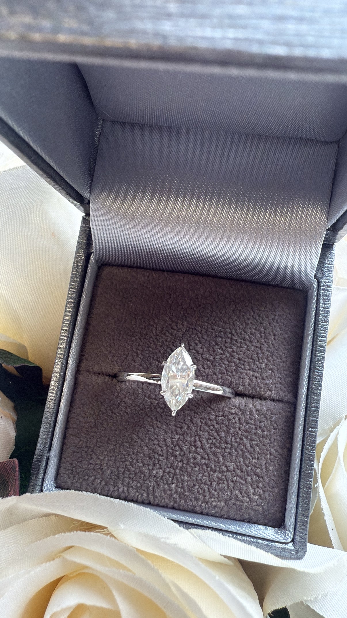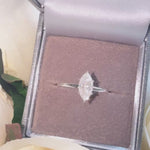 Marquise Moissanite Sterling Silver Ring with Hidden Halo
