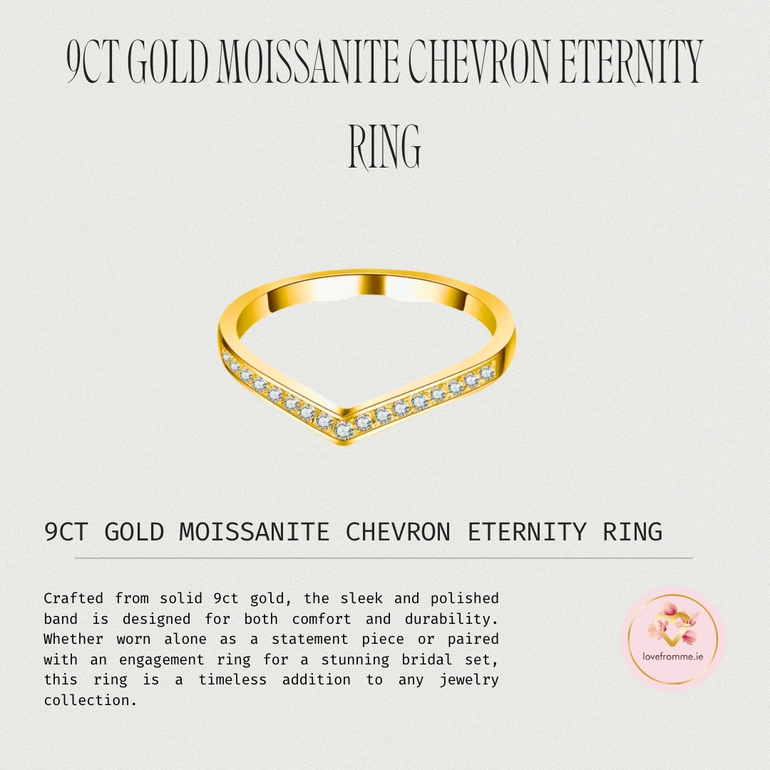 A stunning symbol of love and sophistication, this 9ct moissanite chevron ring is the ultimate accessory for those who appreciate timeless beauty.