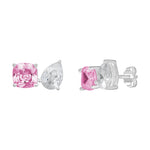 • Dual stone design: pink cushion-cut & clear pear-cut CZ