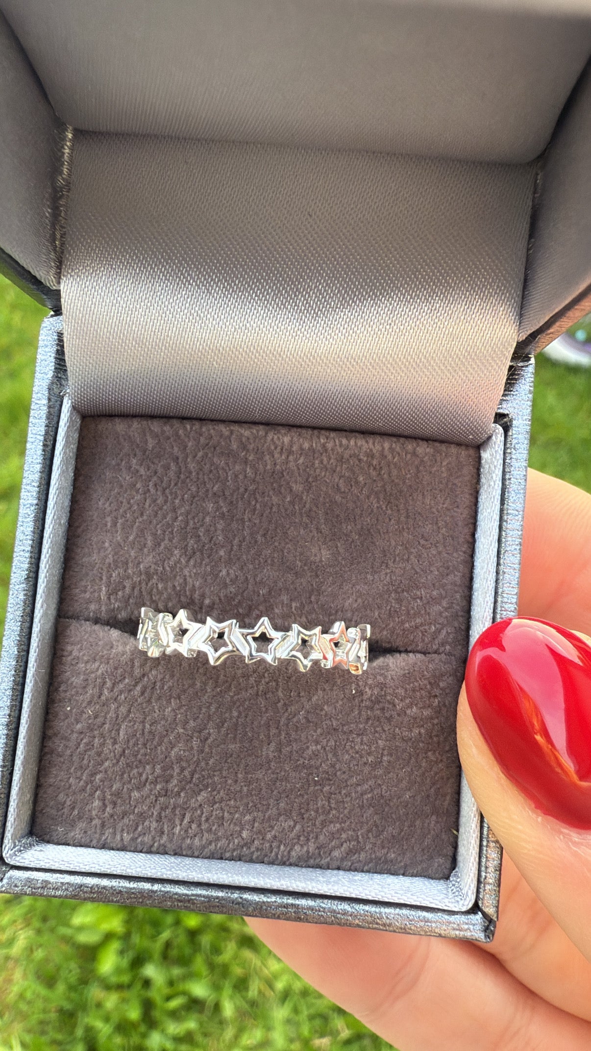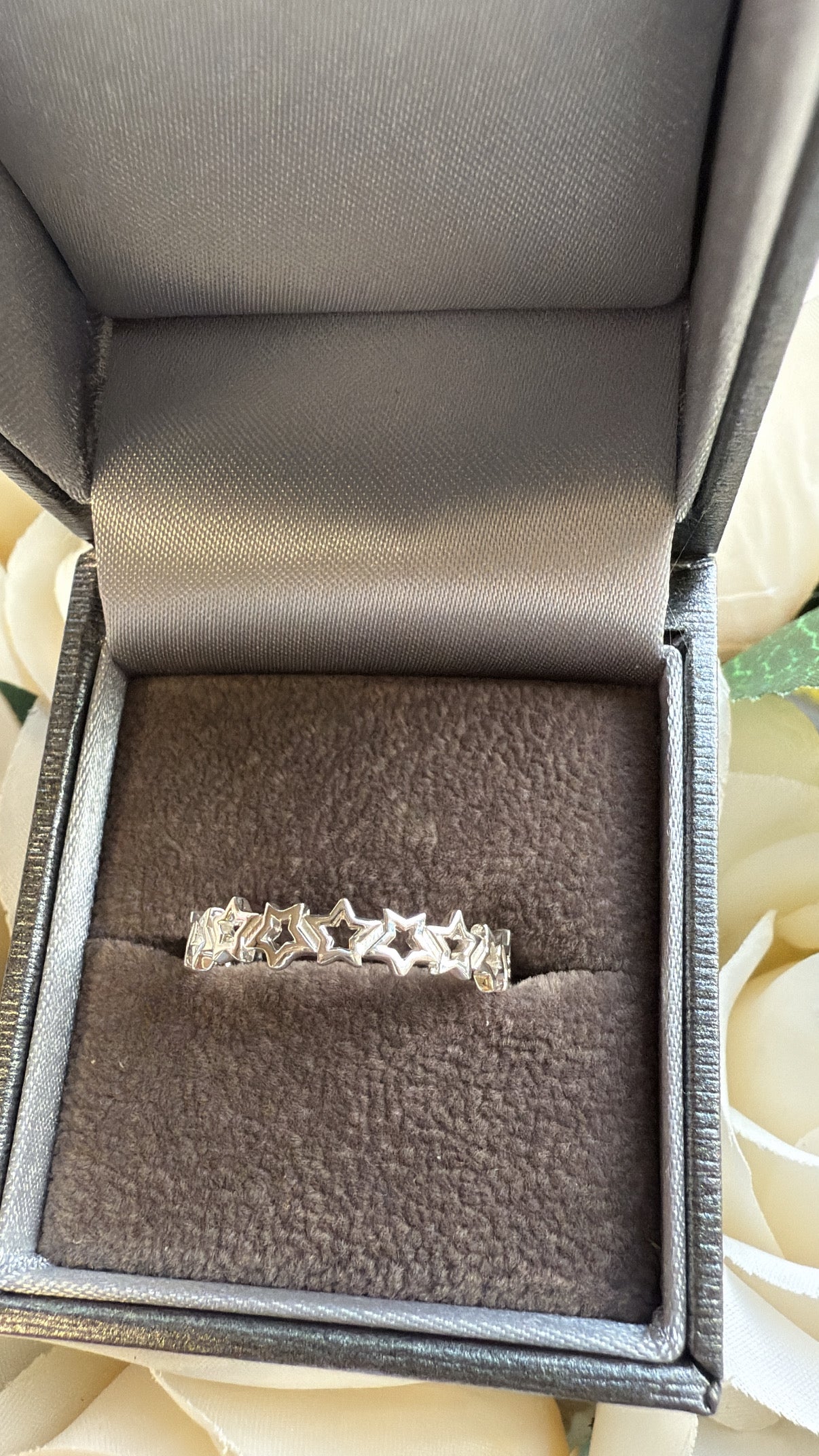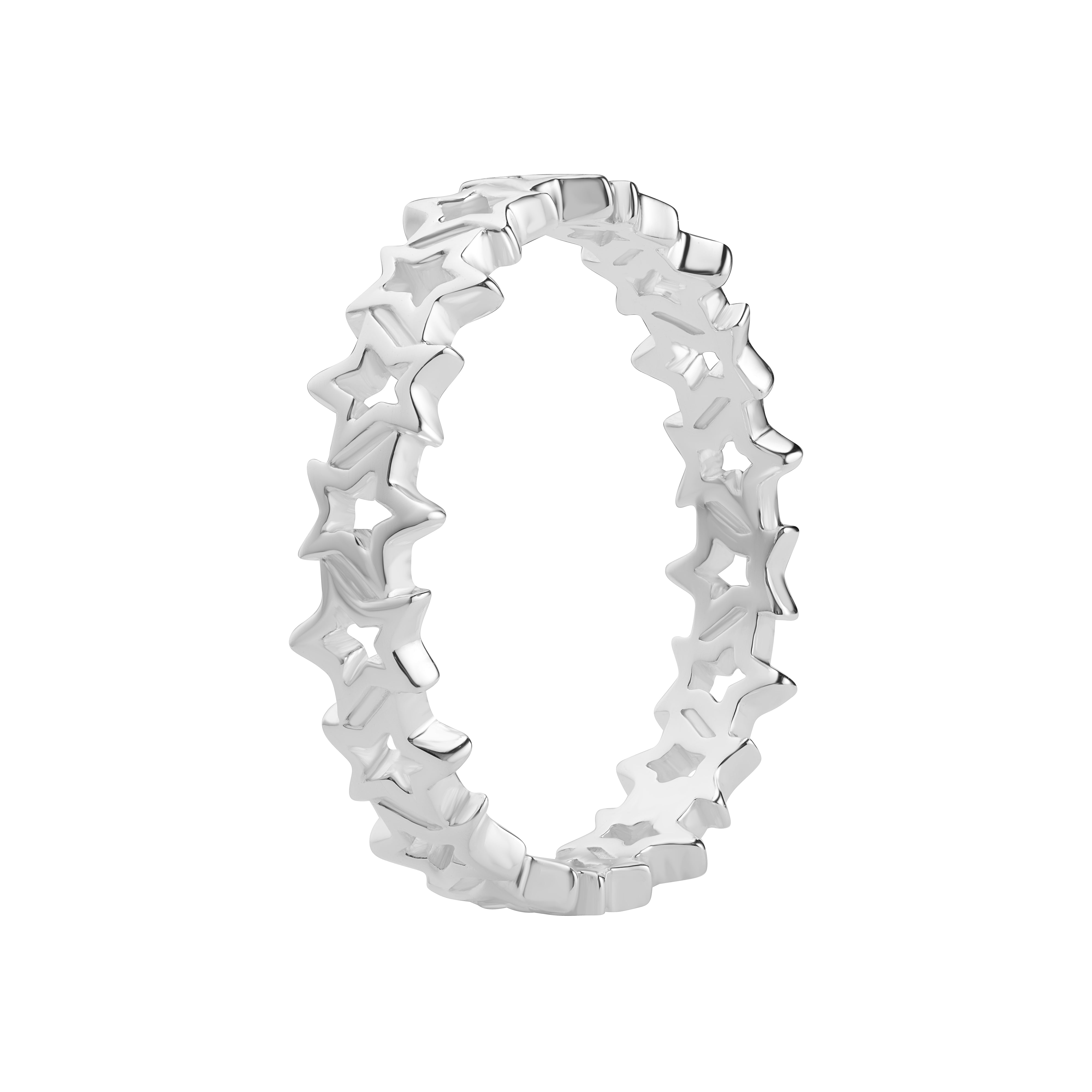 Shine bright with this whimsical sterling silver ring, designed with a continuous band of delicate cut-out stars. Its lightweight yet striking design makes it perfect for stacking with other rings or wearing solo as a celestial statement piece.