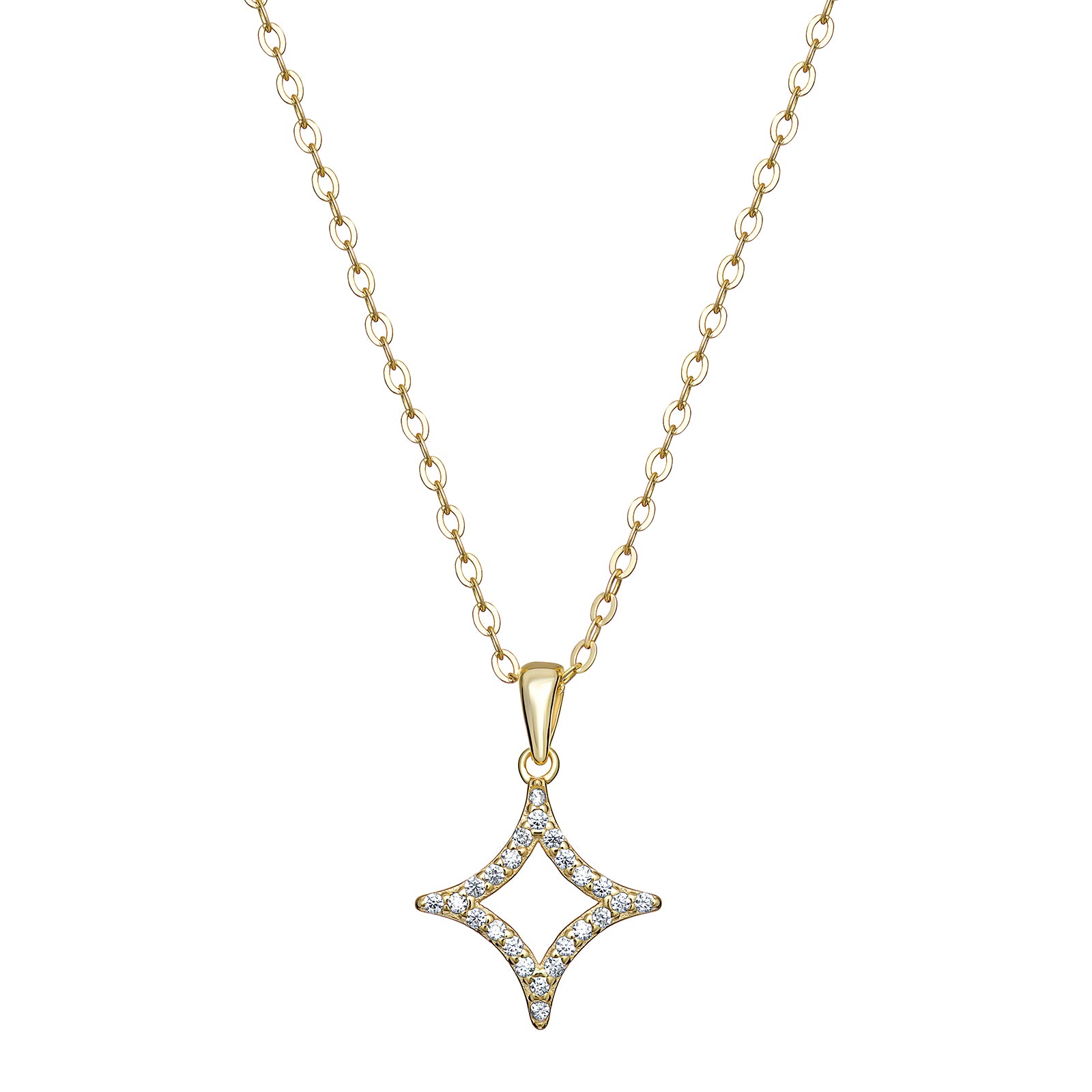 Bring a touch of celestial elegance to your everyday style with this stunning gold-plated sterling silver star pendant. Designed in a modern open-star silhouette, the pendant is delicately outlined with shimmering cubic zirconia, creating a radiant sparkle that catches the light beautifully. Its soft curves and refined shape give it a sophisticated, timeless feel — perfect for layering or wearing as a stand-alone statement.