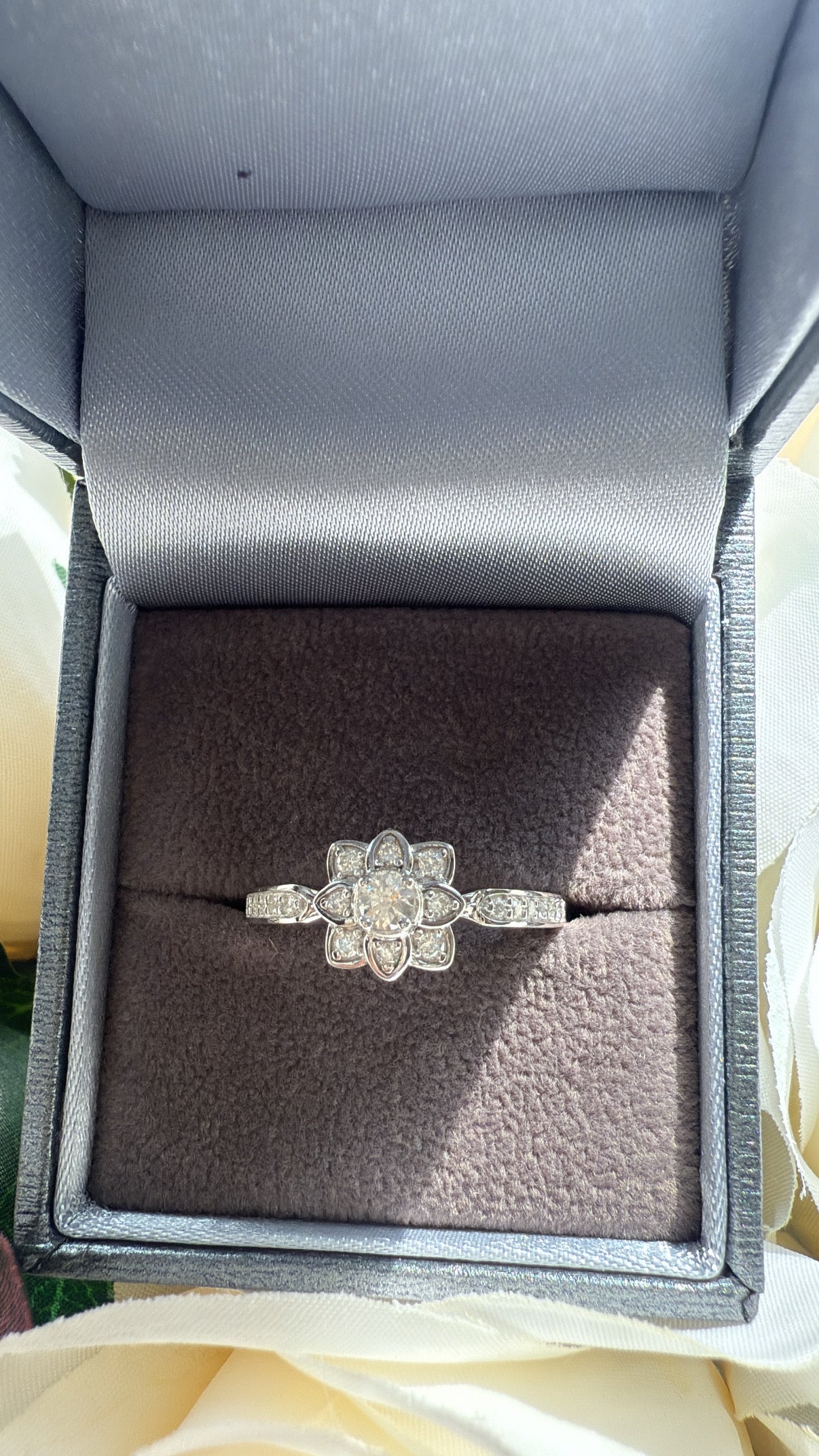 ✔ Design: Intricate flower motif with pavé-set band