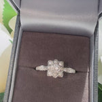 Elegance blooms in this dazzling Sterling Silver Floral Ring, featuring a radiant arrangement of premium moissanite stones. Crafted in solid 925 sterling silver, this piece is designed with a graceful floral centerpiece, where each petal is delicately set with brilliant-cut moissanite for a captivating sparkle from every angle.