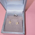 • Add a delicate touch of sparkle to your look with these beautiful.Cubic Zirconia stones in a flower  9ct  gold setting, the earring backs are made from 9ct yellow gold.