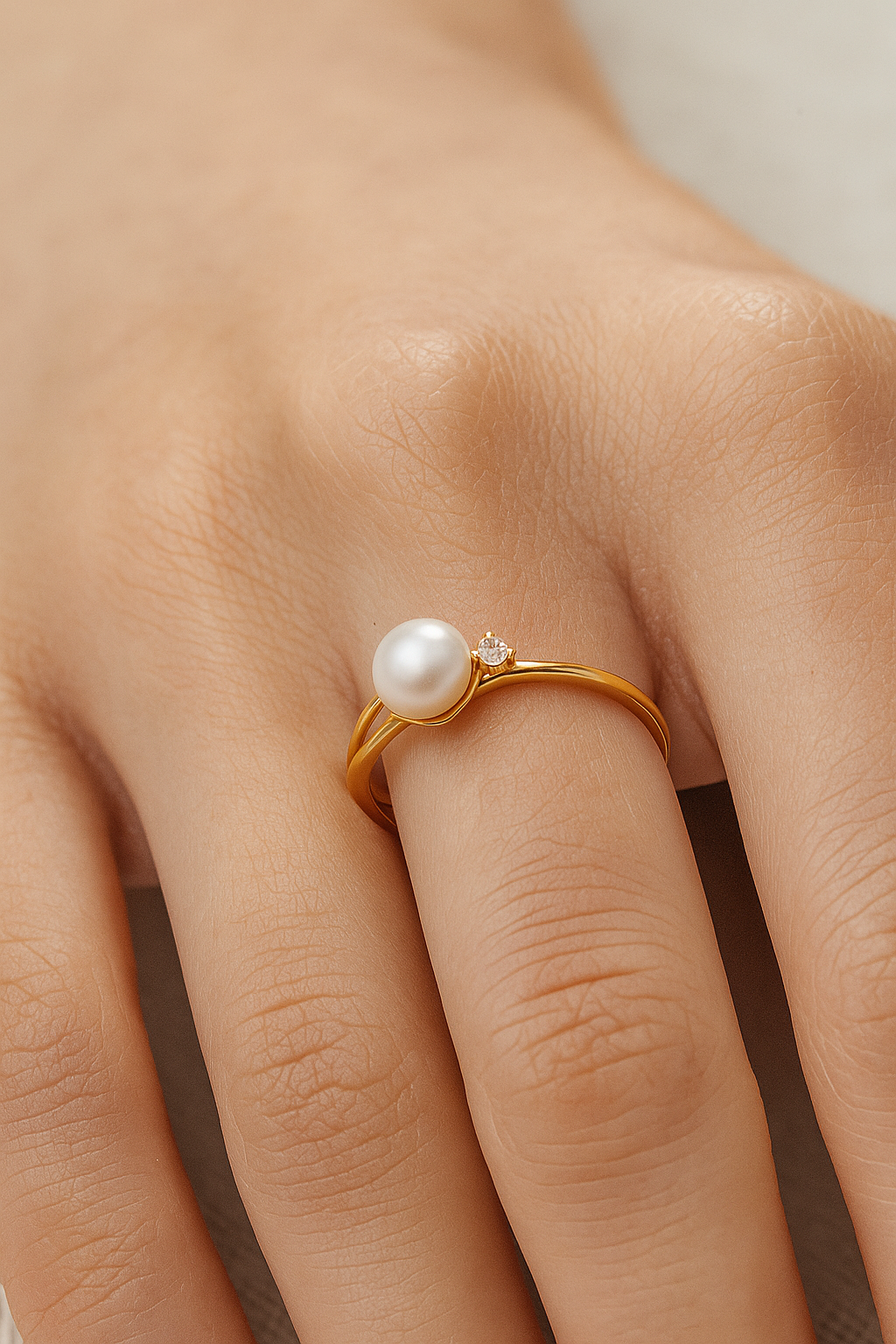Gold Plated Olivia Pearl Ring- Sterling Silver