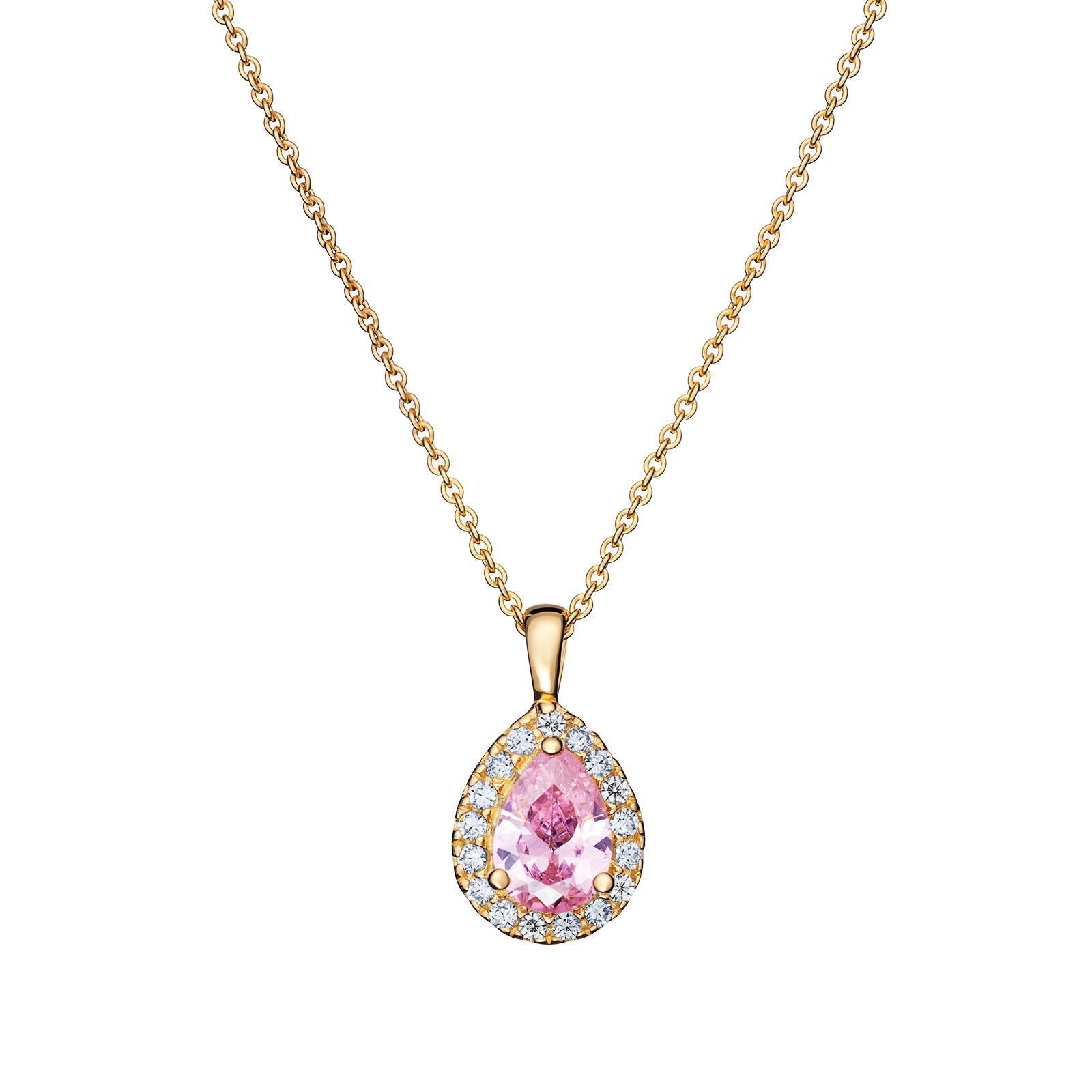 Sterling Gold Plated Pear Pink Necklace