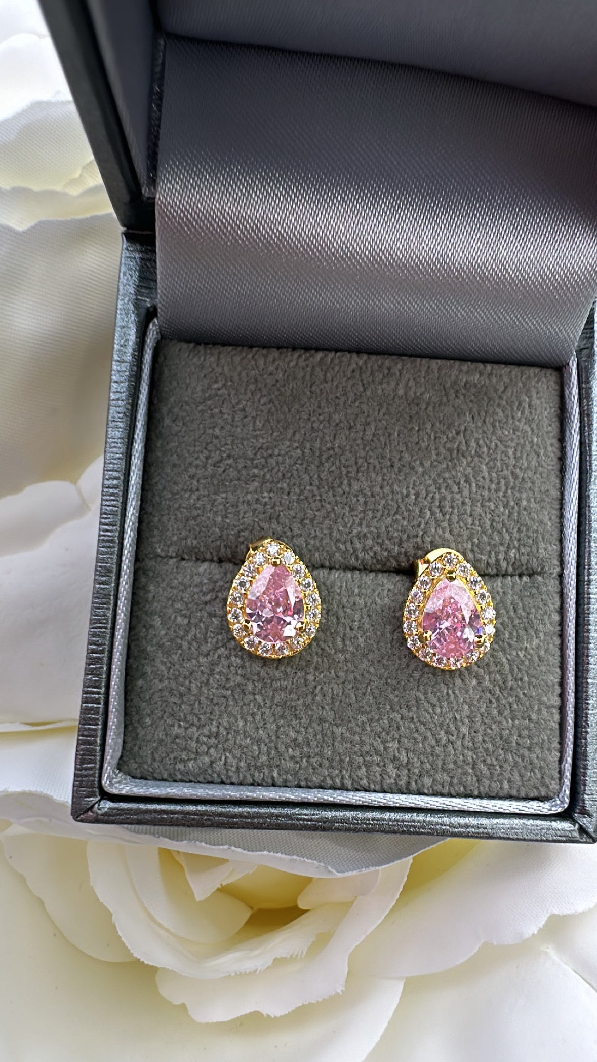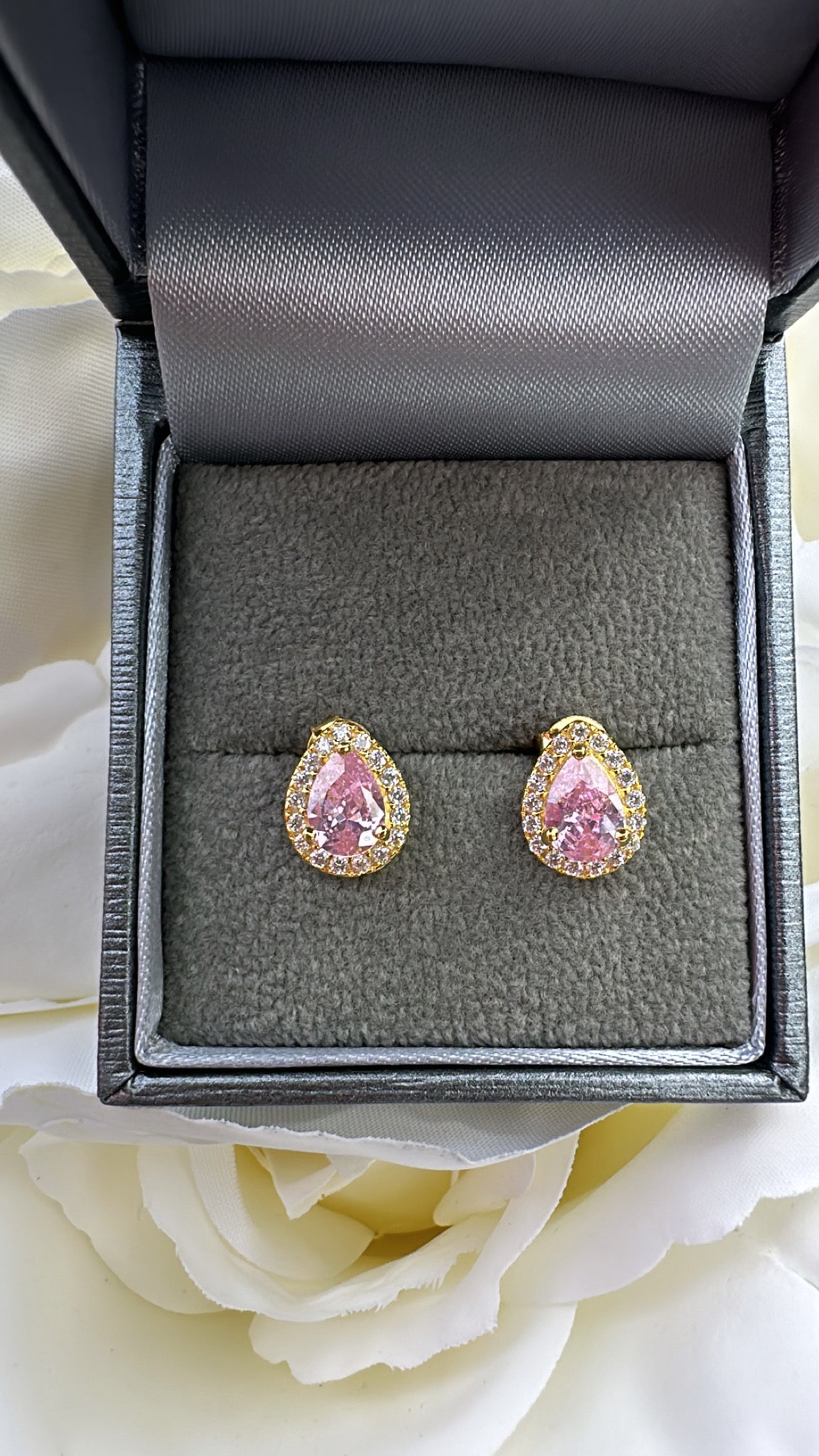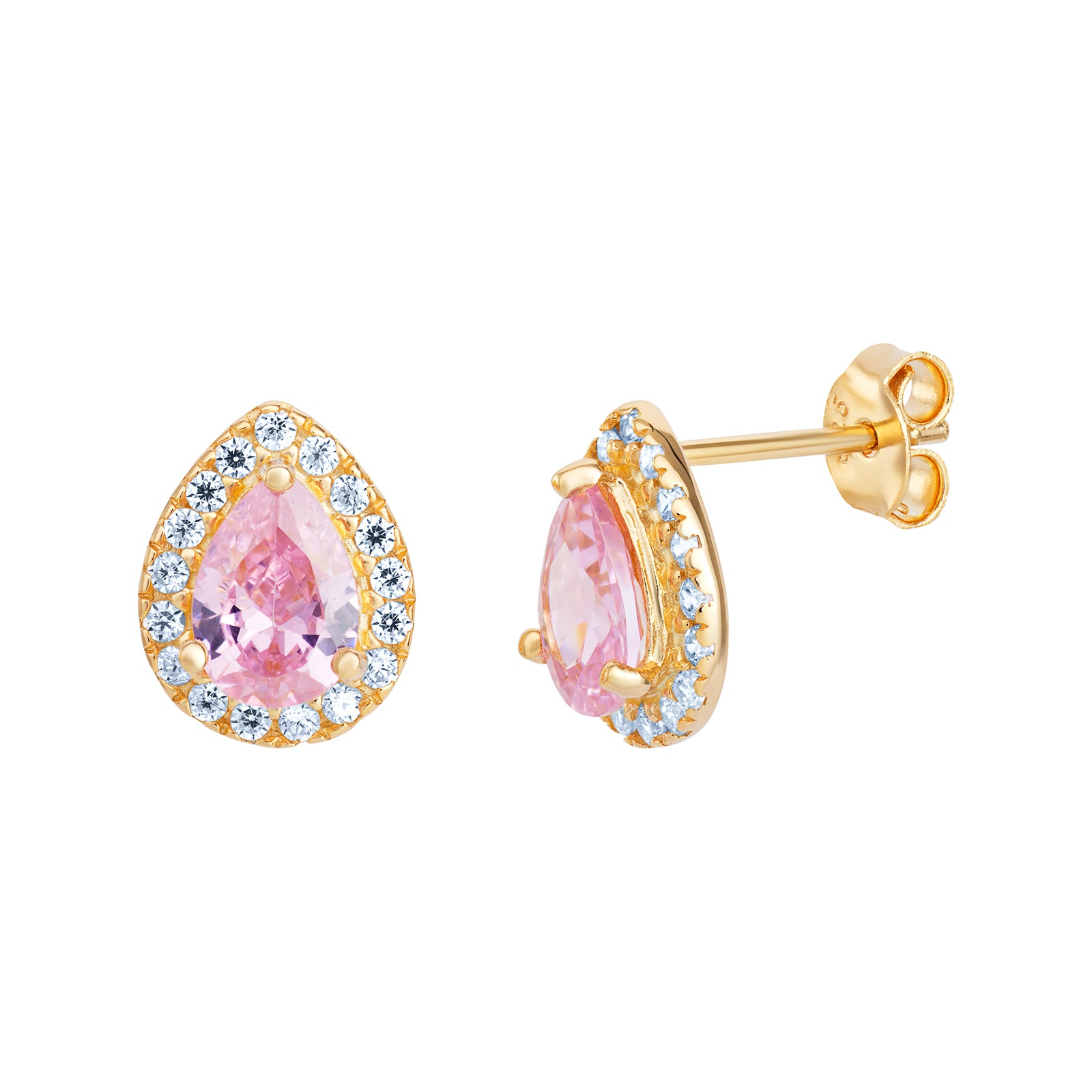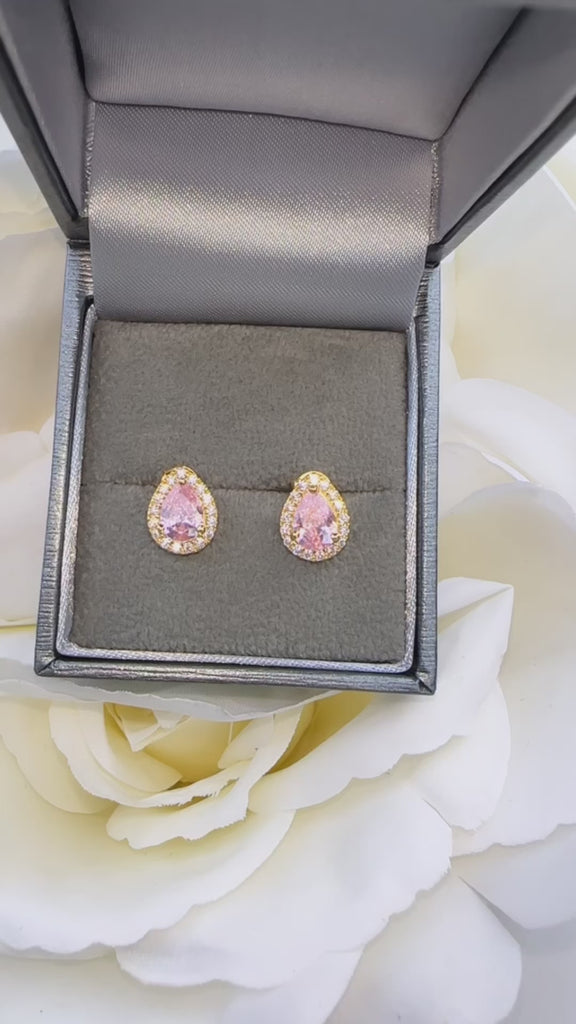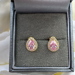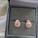 Sterling Gold Plated Pear Pink Stud Earrings