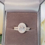 Make a statement with this breathtaking oval-cut halo ring set, beautifully crafted in 925 sterling silver and plated. The center stage belongs to a brilliant oval cubic zirconia, expertly framed by a halo of sparkling pavé-set stones, creating an elegant, timeless silhouette. The matching band features a full row of CZ stones, designed to enhance the overall sparkle and create a seamless, luxurious stack.