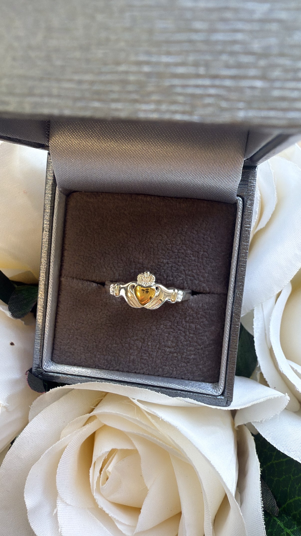 The open band design gives it a light, modern feel while maintaining its classic Irish roots. Whether as a promise ring, a meaningful gift, or a personal keepsake, this Claddagh ring is a perfect symbol of connection and commitment.