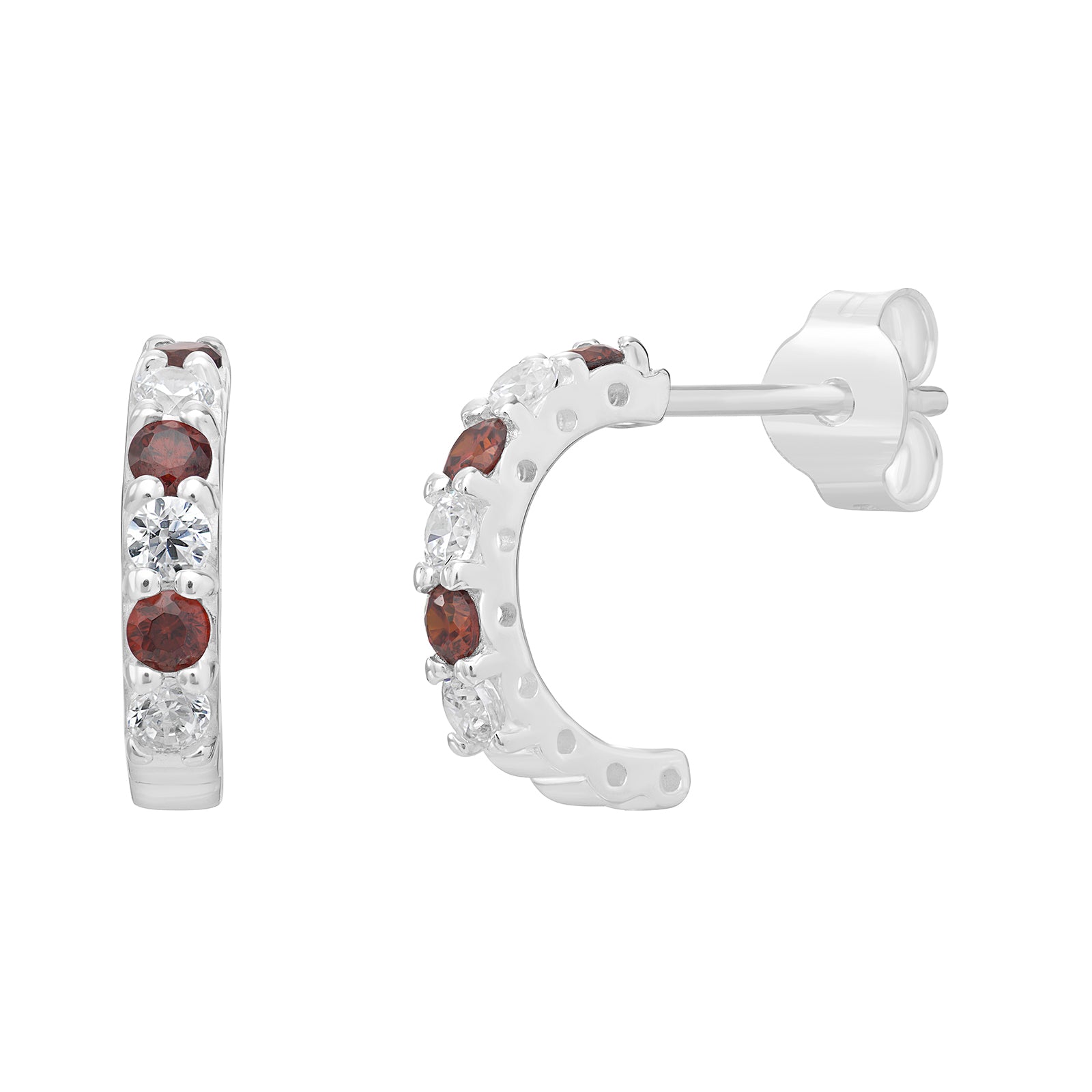 Add a rich pop of colour to your jewellery collection with these elegant sterling silver garnet mini hoops. Each earring is beautifully set with alternating deep red garnet stones and sparkling clear cubic zirconia, creating a striking contrast that catches the light effortlessly. The semi-hoop design offers the perfect blend of everyday comfort and timeless sophistication.
