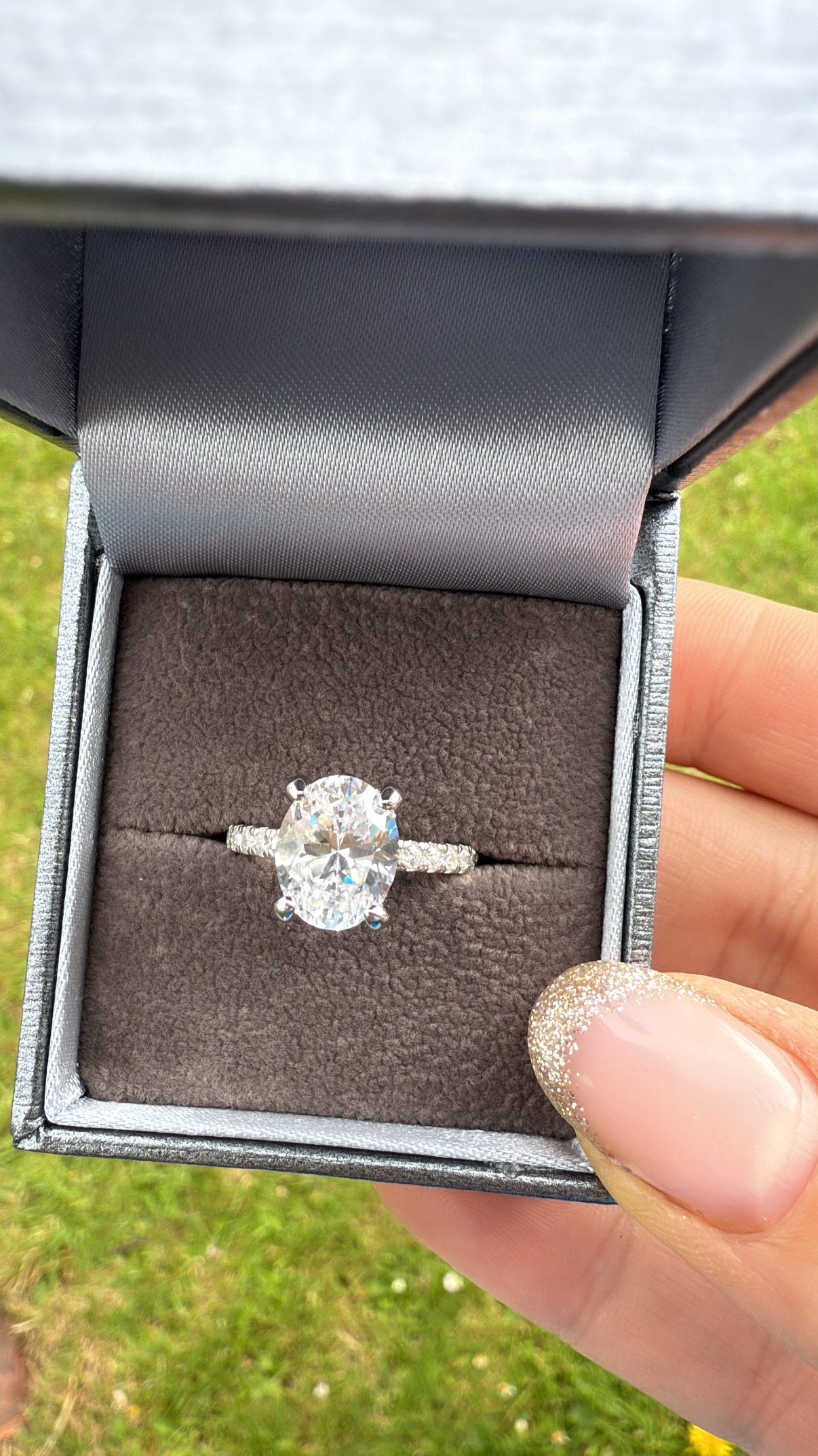 • 3ct brilliant oval-cut cubic zirconia centerpiece