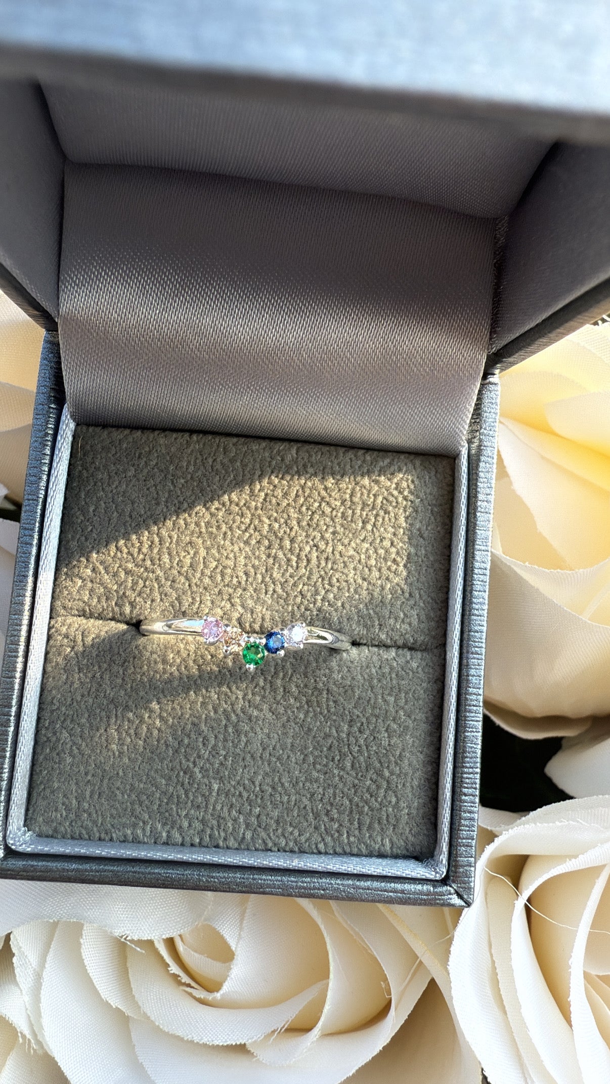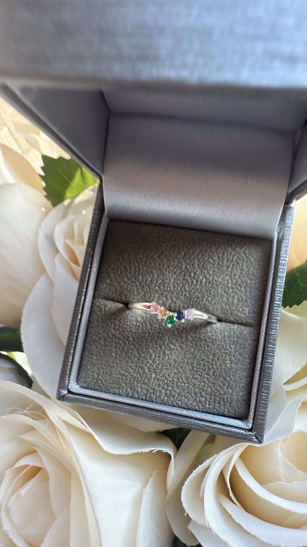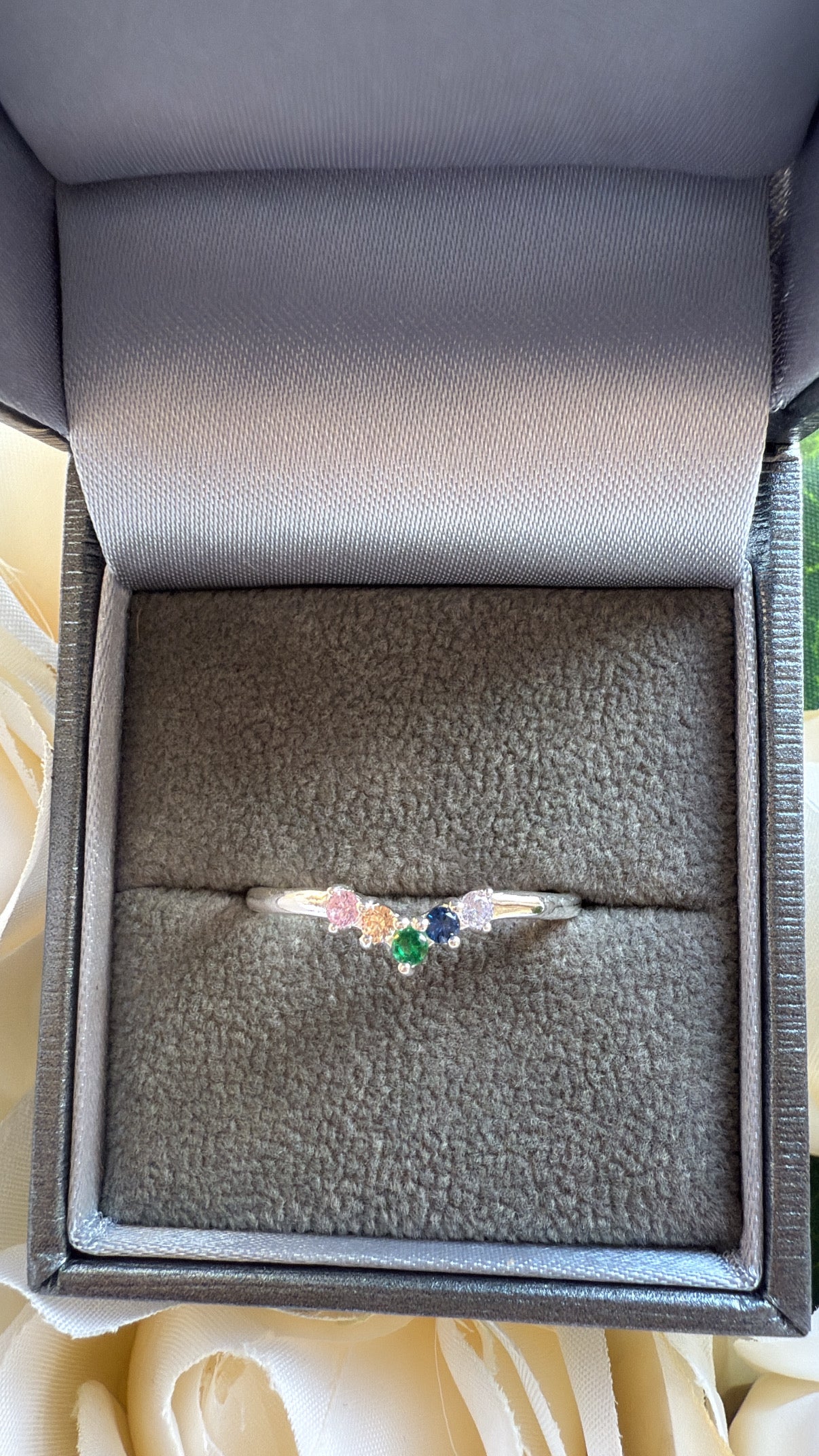 Delicate, colorful, and effortlessly elegant, this Sterling Silver Multi-Gemstone Curved Ring is the perfect touch of sparkle for any occasion. Crafted from 925 sterling silver, this ring features a graceful curved design set with a vibrant row of round-cut cubic zirconia stones in a stunning mix of colors.