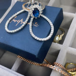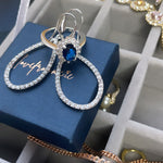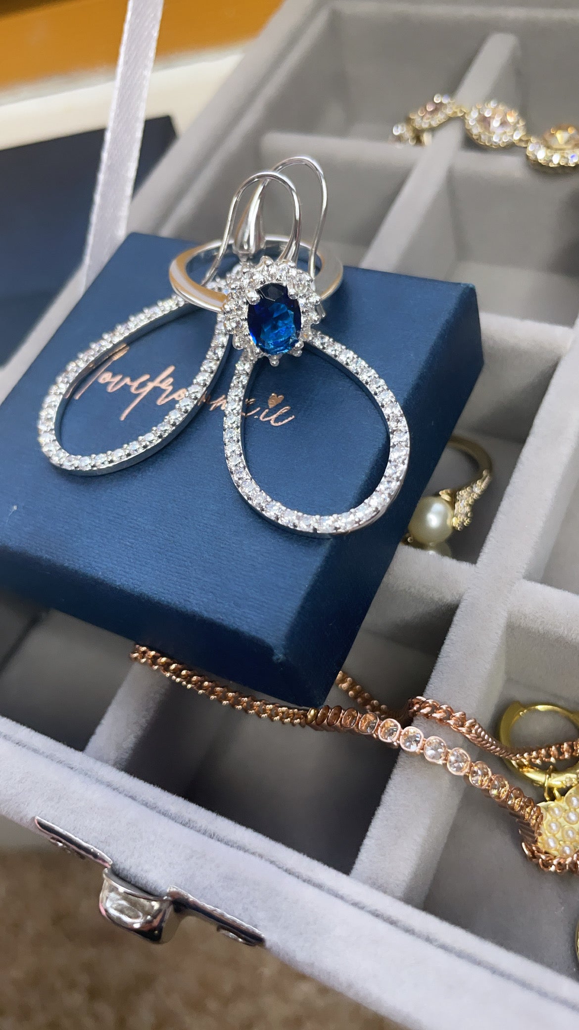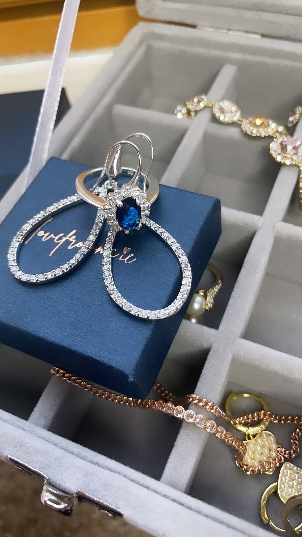 •  Sterling Silver Cubic Zirconia Ring. This sterling silver ring is set with an oval blue stone surrounded by clear cubic zirconia stones