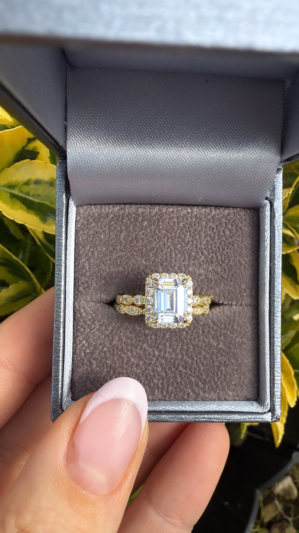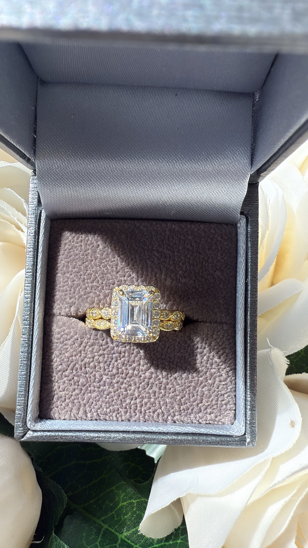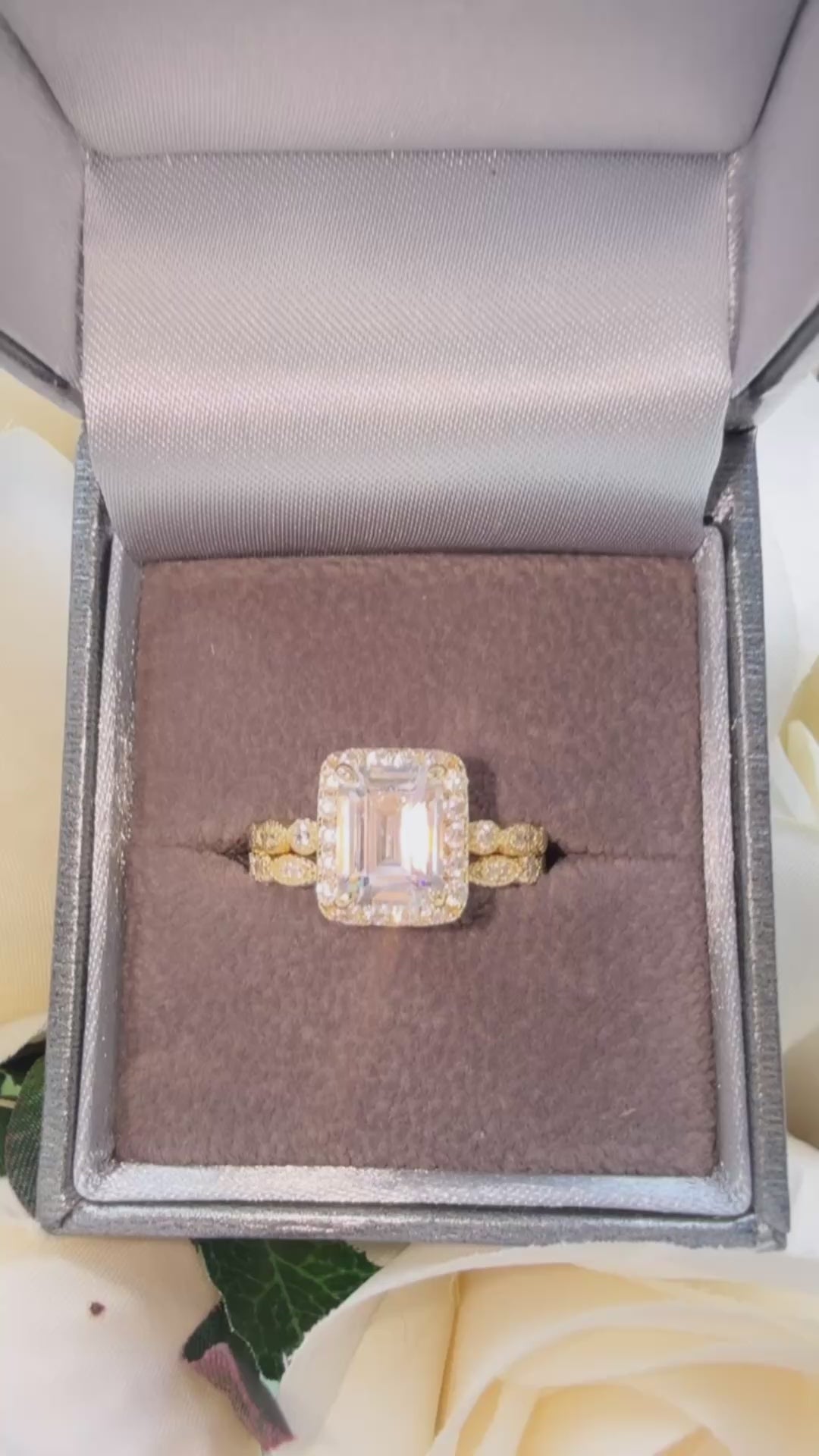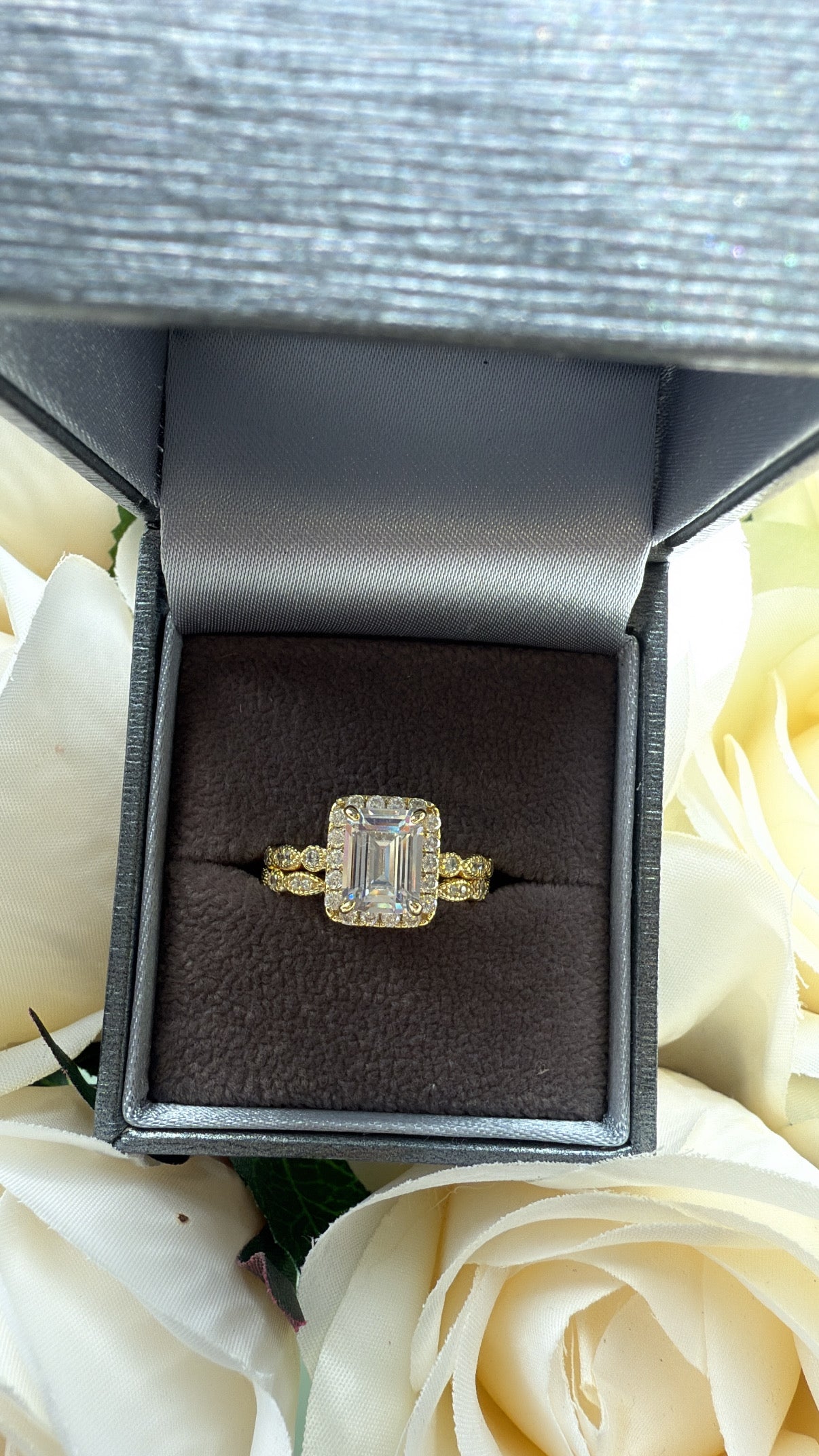 The Vienna Set – Emerald-Cut Halo Ring Duo Sterling Silver Gold Plated